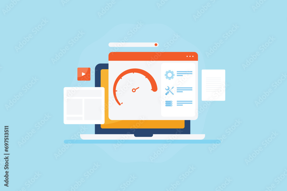 Wall mural : Website performance and testing online software tool, webpage loading speed test, server response ti