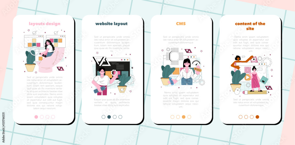 Wall mural : Website programming mobile application banner set - content management