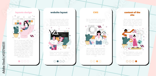 The watermark will not be included on Wall mural.: Website programming mobile application banner set - content management