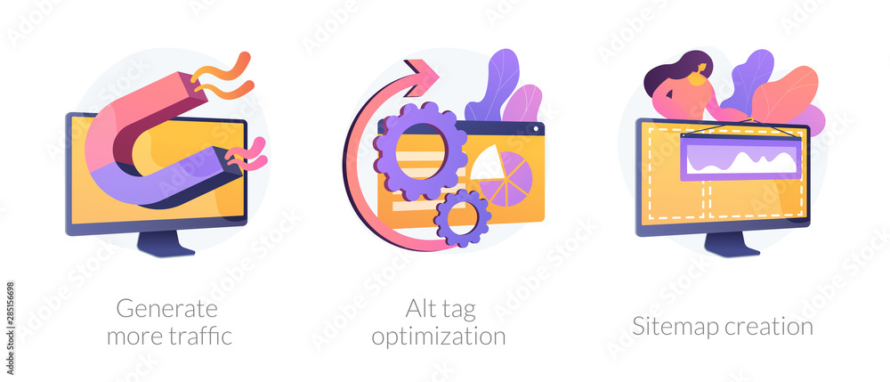 Wall mural : Website promotion services icons set - search engine optimization business - generate more traffic, al