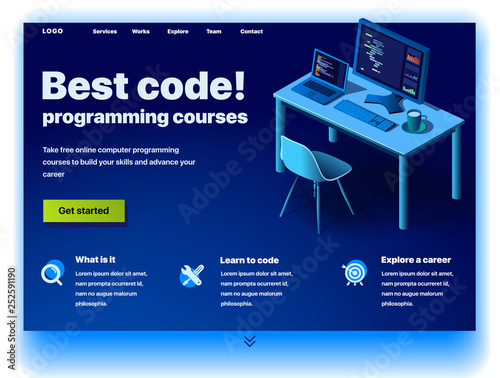 Wall mural : Website providing the service of best code programming courses - concept of a landing page for best c