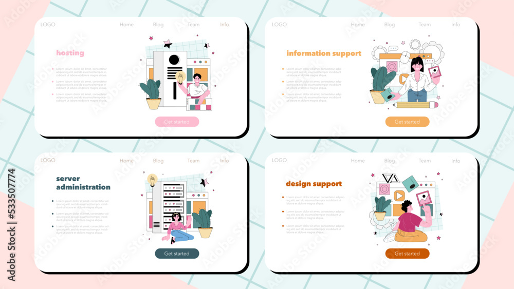 Wall mural website technical support web banner or landing page set. idea of web - Wall murals Wall mural website technical support web banner or landing page set. idea of web - Wall murals