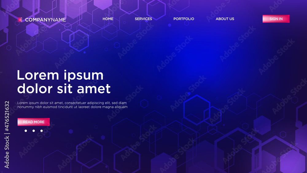 Wall mural website template design. abstract scientific background with colorful dynamic waves, hexagonal innov