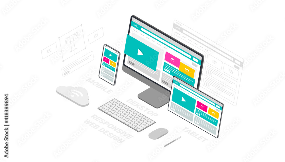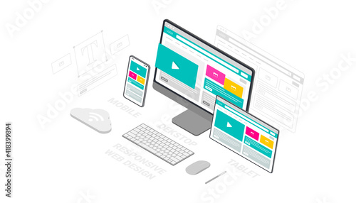 Wall mural website template design. modern vector illustration 3d isometric of web page design for website and  - Wall murals Wall mural website template design. modern vector illustration 3d isometric of web page design for website and - Wall murals