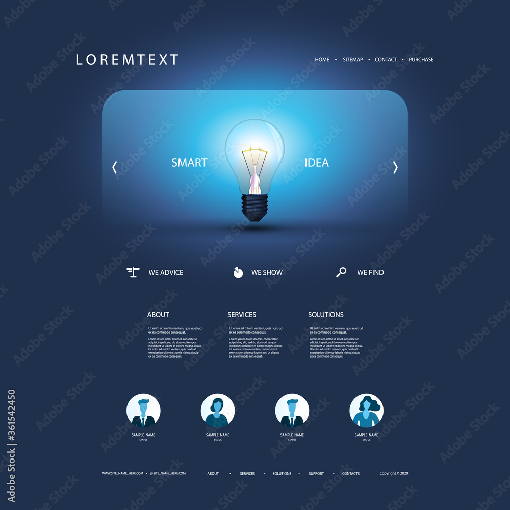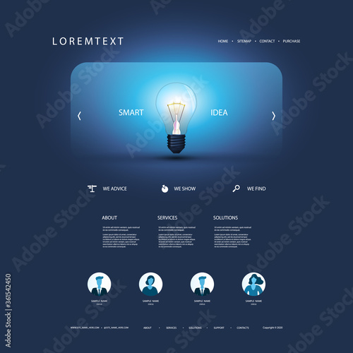 Wall mural : Website template for your business with smart idea concept - design with glowing light bulb in the h