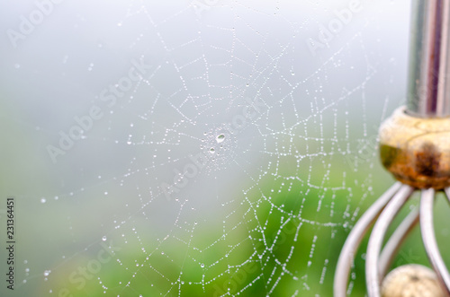 The watermark will not be included on Wall mural.: Wet spider web in the nature, dew on cobweb