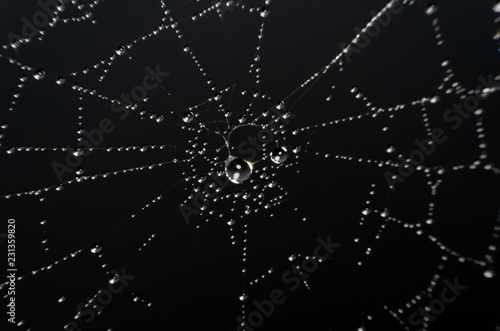 Wall mural : Wet spider web in the nature, dew on cobweb