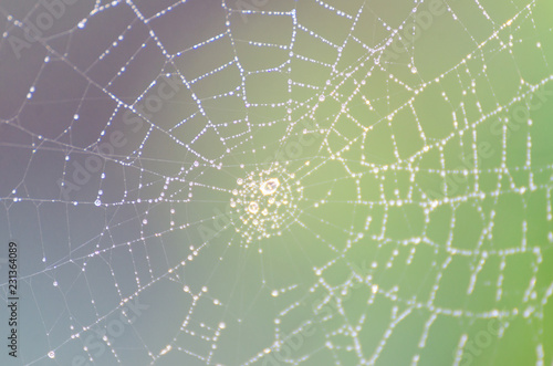 The watermark will not be included on Wall mural.: Wet spider web in the nature, dew on cobweb
