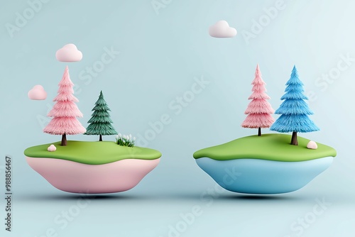 Whimsical landscape featuring colorful trees and soft hills, creating a serene, playful environment Wall mural