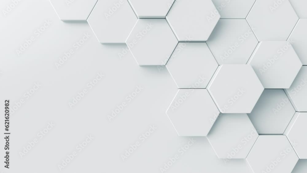Wall mural white 3d abstract background. bright futuristic motion texture. hexagonal video pattern with empty s