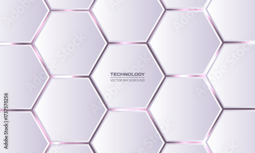 Wall mural white 3d hexagonal technology vector abstract background. pink bright energy flashes under hexagon i