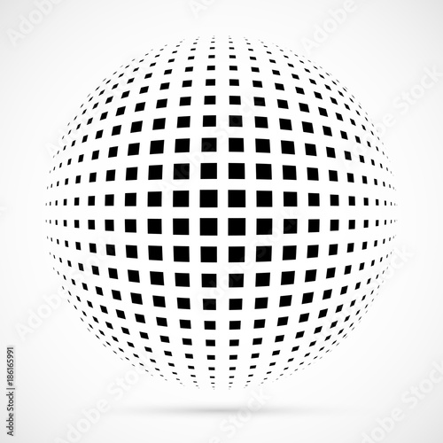 Wall mural white 3d vector halftone sphere.dotted spherical background.logo template with shadow.square dots is - Wall murals Wall mural white 3d vector halftone sphere.dotted spherical background.logo template with shadow.square dots is - Wall murals