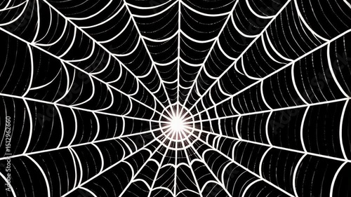The watermark will not be included on Wall mural.: White abstract spider web on black background with a radiating perspective and intricate lines, crea