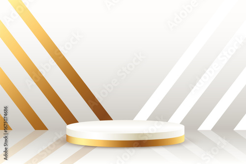 White and golden podium stand for object showcase with diagonal stripeWall mural