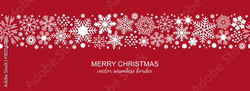 Wall mural white and red seamless snowflake border, christmas design for greeting card. vector illustration, me