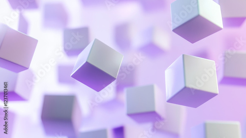 The watermark will not be included on Wall mural.: White and violet flying cubes and boxes in in front of white background abstract 3 render illustrati
