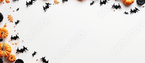 Wall mural white background with halloween decorations for a flat lay image emphasizing the halloween concept f