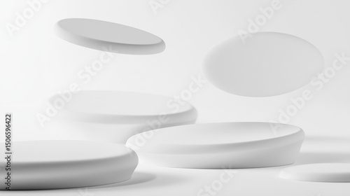 Wall mural : White circulars isolated on a clean background, a simple and stark abstract composition