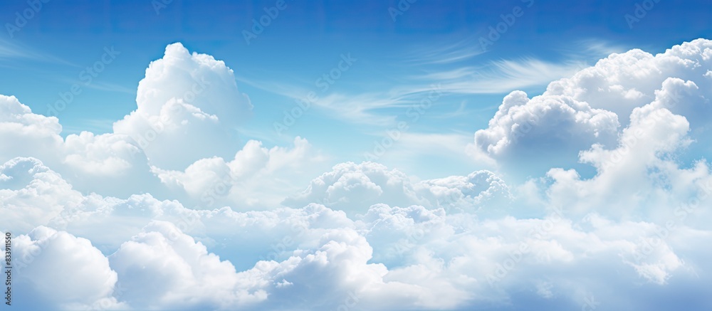 Wall mural white clouds fill the sky with a backdrop of blue, creating a peaceful and serene atmosphere for any - Wall murals Wall mural white clouds fill the sky with a backdrop of blue, creating a peaceful and serene atmosphere for any - Wall murals