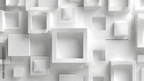 The watermark will not be included on Wall mural.: White color technology concept geometric square background - square 3d modern abstract white backgrou
