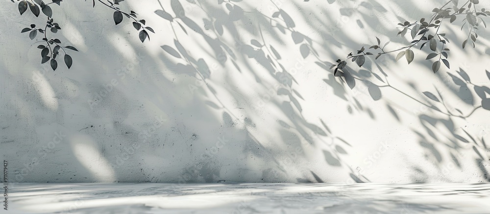 Wall mural white concrete encases the floor and walls casting delicate leaf and branch shadows creating a subtl