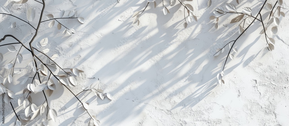 Wall mural white concrete surfaces with leaf and branch shadows create a natural pattern with light gray shadow