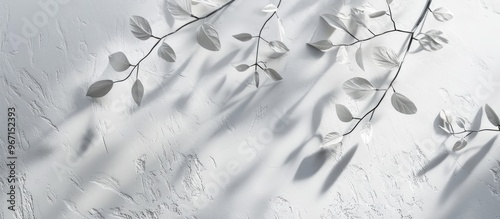 The watermark will not be included on Wall mural.: White concrete surfaces with leaf and branch shadows creating a natural pattern of light gray shadow