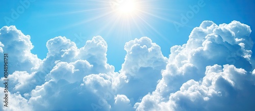 Wall mural white cumulus clouds illuminated by bright sunlight drifting in a blue sky. with copy space image. p