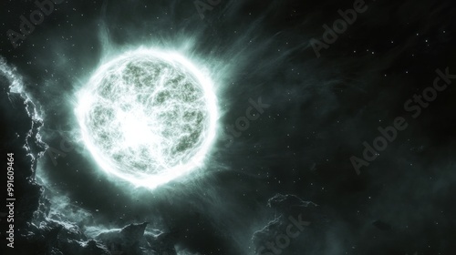Wall mural white dwarf star cooling down in the aftermath of a supernova, glowing faintly in the darkness of sp - Wall murals Wall mural white dwarf star cooling down in the aftermath of a supernova, glowing faintly in the darkness of sp - Wall murals