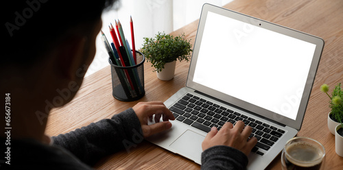 Wall mural white empty screen on modish computer for your design mock up on the monitor display - Wall murals Wall mural white empty screen on modish computer for your design mock up on the monitor display - Wall murals
