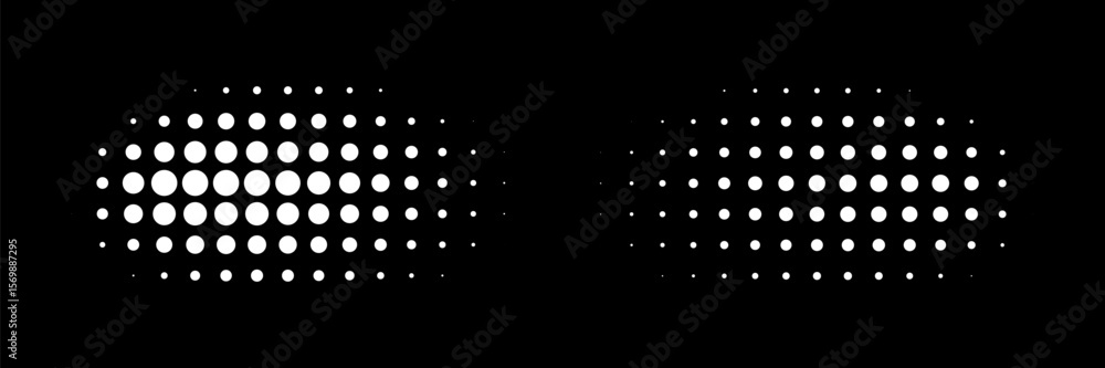 The watermark will not be included on Wall mural.: White halftone radial circle dots frame horizontal background - black circular border using halftone