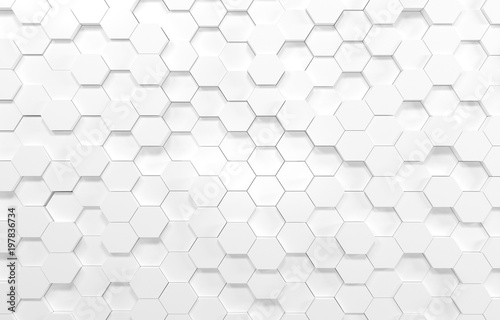 The watermark will not be included on Wall mural.: White hexagon 3d background texture - 3d rendering illustration - futuristic abstract banner -