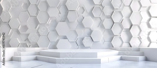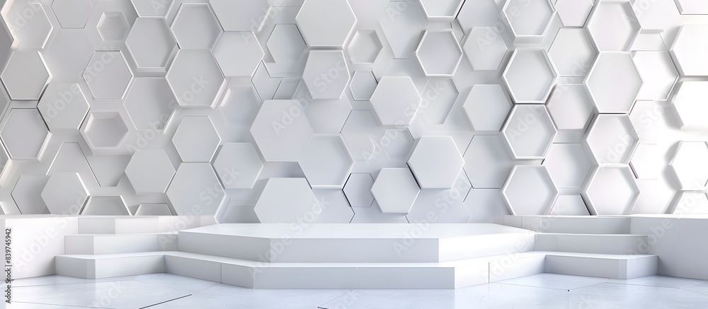 The watermark will not be included on Wall mural.: White hexagonal wall with empty stage and geometric patterns