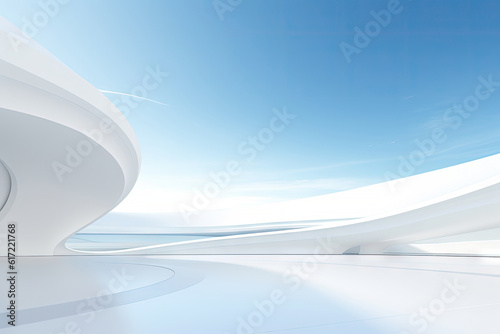 Wall mural : White minimal architecture building background empty wide space for mock up, concrete floor car park