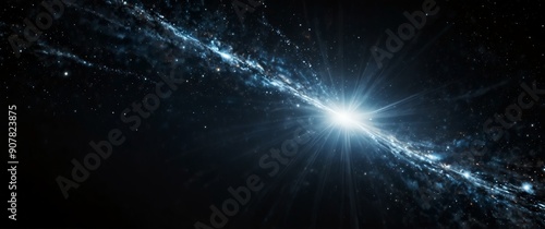 The watermark will not be included on Wall mural.: White motion lights in space galaxy plain black background wide angle panoramic view backdrop copy s