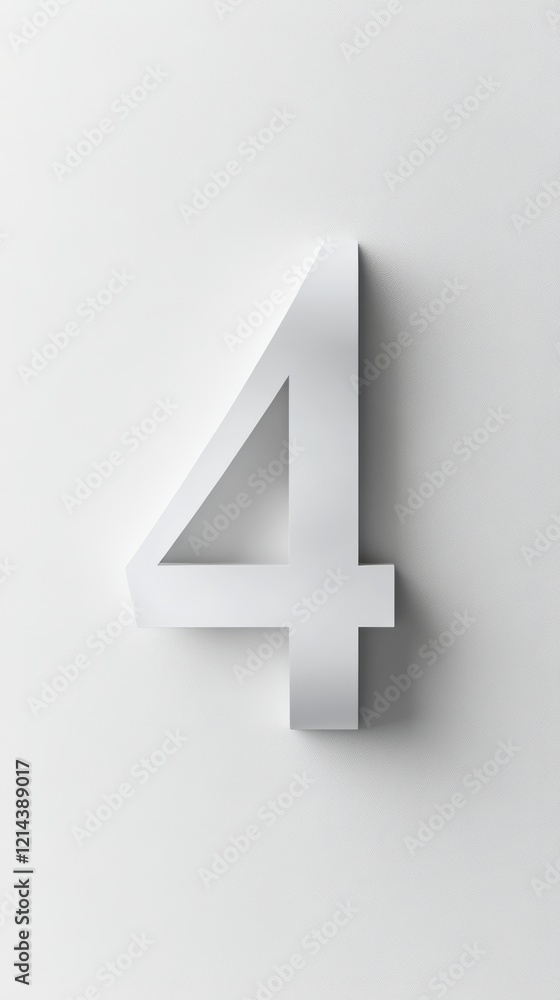 Wall mural white number four casting a subtle shadow on a white background, creating a minimalist and modern co - Wall murals Wall mural white number four casting a subtle shadow on a white background, creating a minimalist and modern co - Wall murals