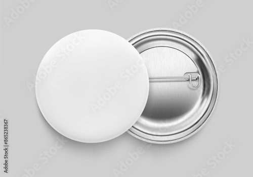 The watermark will not be included on Wall mural.: White pin button badge mockup - vector illustration isolated on grey background - ready and simple to