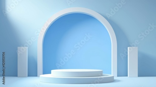 The watermark will not be included on Wall mural.: White round podium arch background - an empty showcase for displaying goods - 3d rendering -