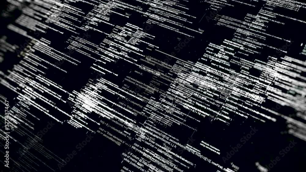 Wall mural : White scrolling lines of programming language on black background - animation - abstract screen of mod