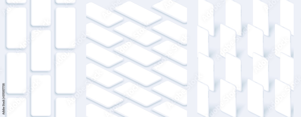 Wall mural white smartphone mockup. device ui/ux mockup for presentation template. . cellphone frame with blank