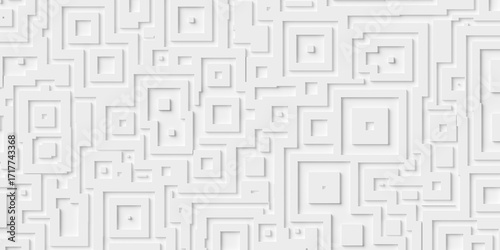 The watermark will not be included on Wall mural.: White square and rectangle offset maze structure geometry background wallpaper banner, flat lay