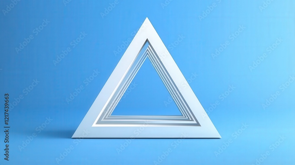 The watermark will not be included on Wall mural.: White triangular shape with layered cutouts on a vibrant blue background for modern design and abstr