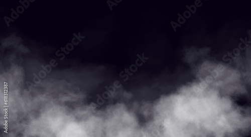 Wall mural : White vector smoke or fog on dark copy space background - realistic decorative fog effect and transpa