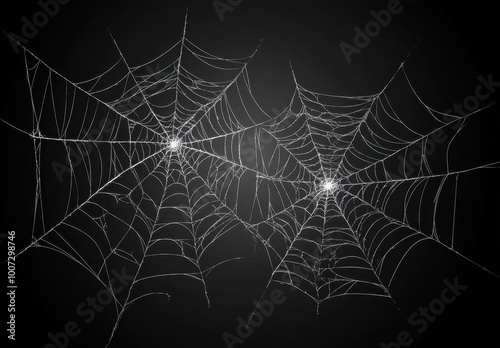 The watermark will not be included on Wall mural.: White vector spider webs on a black background halloween design elements generative ai