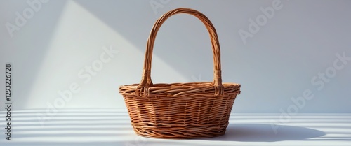 Wall mural wicker basket on white background with natural light and space for text or design elements