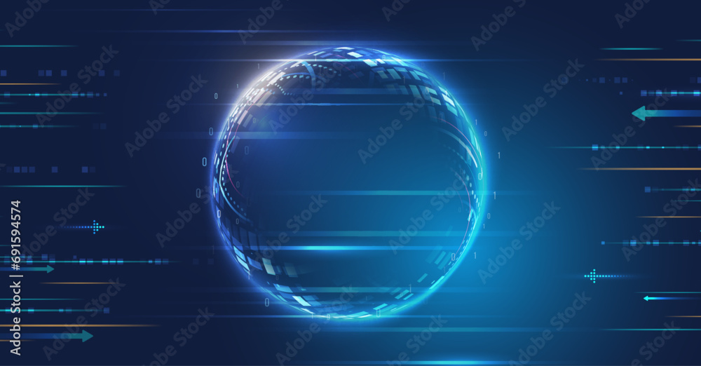 The watermark will not be included on Wall mural.: Wide blue background with various technological elements - abstract circle technology communication,
