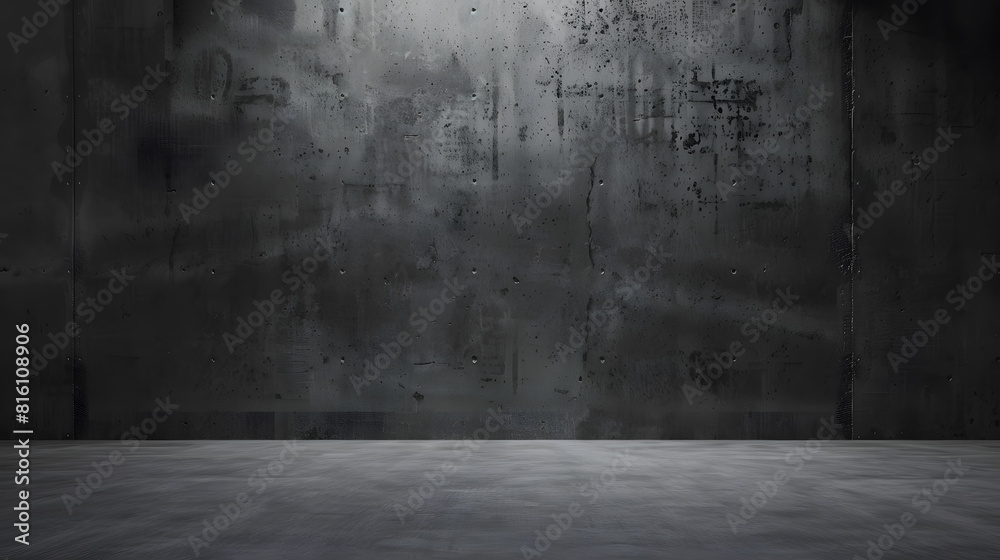 Wide dark concrete studio room background with low lighting for product display or mock up design emWall mural
