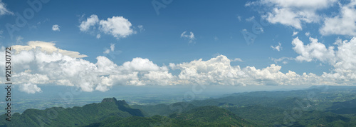 Wall mural : Wide panoramic view of mountain with blue sky -
