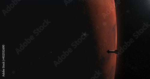 Wall mural wide spaceship rocket approaching planet mars, space colonization concept
