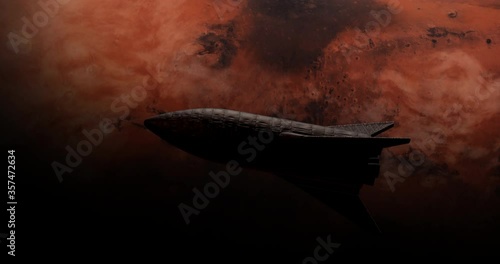 Wall mural wide spaceship rocket flying above mars surface, space colonization concept